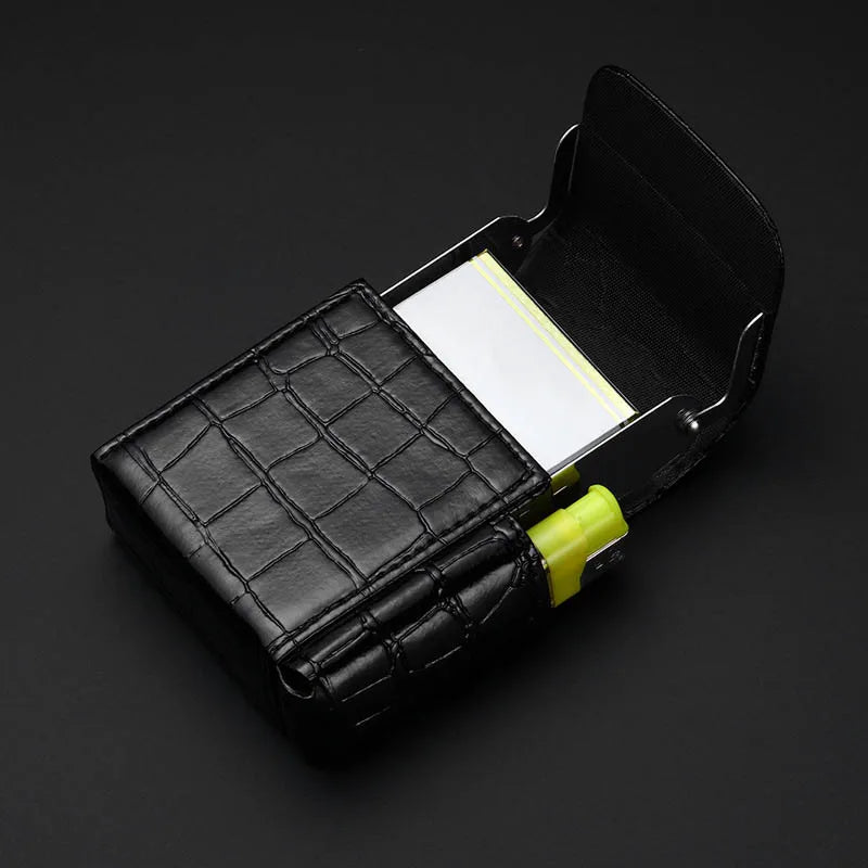 Crafted from premium PU leather with a refined litchi-texture finish, this compact smoker’s case combines elegance with practicality. Designed to hold cigarettes, a lighter, and even business cards, it’s the ultimate accessory for stylish smokers on the go.