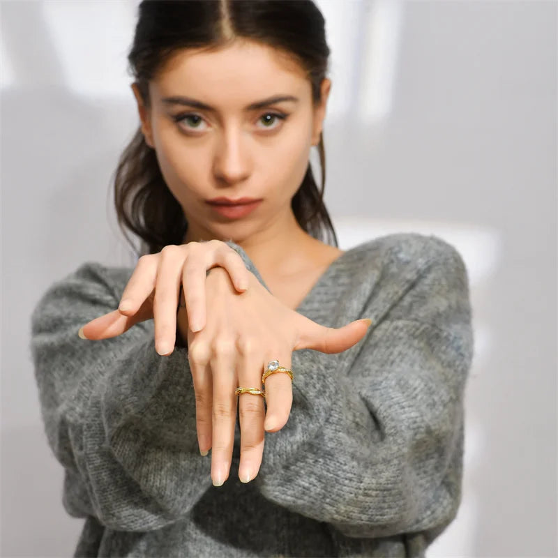 Timeless and radiant, this two-piece bridal ring set features a brilliant round zircon stone surrounded by a delicate gold band. Designed to capture the essence of everlasting love, it’s perfect for engagements, weddings, or elegant daily wear.