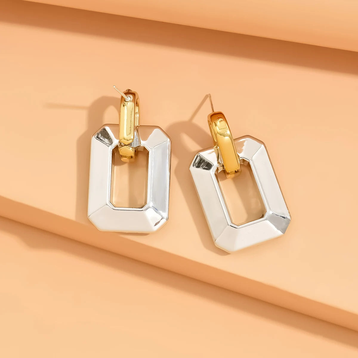 Bold and modern, these geometric acrylic earrings add a vibrant pop of color to any outfit. Their lightweight design and glossy finish make them the perfect statement piece for both casual and chic looks.