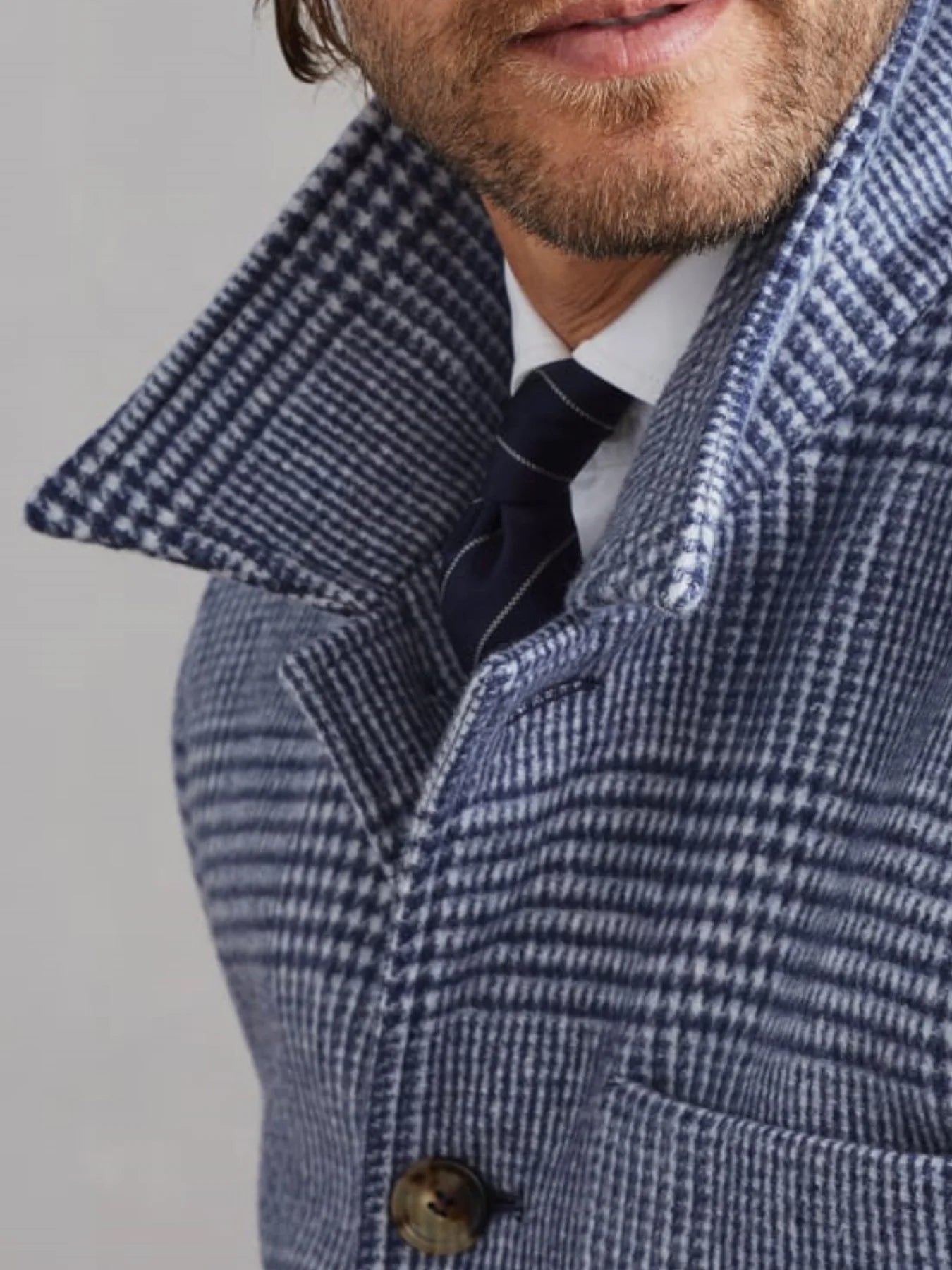 A sophisticated plaid jacket that merges vintage flair with modern tailoring, offering both warmth and effortless style for cool-weather days.